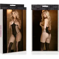 O ținută fierbinte, un model pervers pentru o doamnă fără inhibiții. Produsul imită o combinație de body legat în jurul gâtului, dezvăluind busturile fără probleme și sexy, acoperind articulațiile cu o legare frivolă. Aceasta va trezi dorința fiecărui bărbat și va adăuga condiment în dormitor