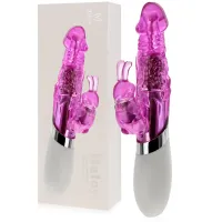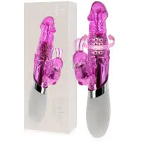 Iepure vibrator realizat dintr-o combinație de înaltă calitate TPR, ABS și silicon. Un masturbator puternic și extrem de eficient pentru femei, care datorită utilizării a două motoare compatibile vă va duce la un orgasm intens în doar câteva momente. Vibratorul are un motor vibrator în iepure pentru clitoris și bile rotative în partea de penetrare care mângâie perfect punctul G și întregul interior al vaginului. Bilele se rotesc la 360 de grade, iar direcția de mișcare dreapta-stânga poate fi schimbată cu ușurință prin apăsarea unui buton. Vibratorul are 6 funcții de vibrație în iepure și 6 funcții de rotație ale bilelor. Funcțiile sunt cuplate și lucrează împreună pentru cele mai bune efecte de stimulare. Mânerul confortabil din silicon anti-alunecare facilitează ținerea și utilizarea jucăriei. Datorită designului rezistent la stropire, este ușor să păstrați gadgetul curat.