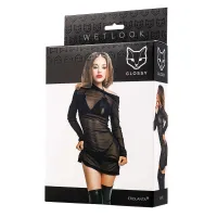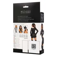 Materialul transparent cu ușoare pliseuri se potrivește perfect siluetei, iar strălucirea Wetlook-ului de dedesubt apare senzual prin plasă. Întregul set creează un efect de seducție în straturi – când dezvăluie, când ascunde, trezind simțurile și evidențiind fiecare mișcare.