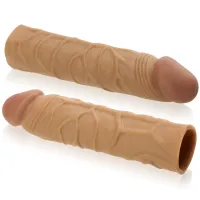 SPECIFICAȚII: - Material: Ciber piele - Culoare: Maro - Extinderea penisului: 3 cm - Lungimea manșonului fără extindere (posibilitatea de reducere a lungimii): 17,5 cm - Lungimea spațiului gol: 14,5 cm - Diametrul exterior al manșonului: 3,5 cm - Diametrul interior fără extindere: 3 cm - Îngroșarea penisului: 0,5 cm - Extindere: până la 200% - Rezistent la apă: Da