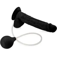 Realistyczne dildo do ekstremalnych sex zabaw. Dorodny, duży penis z jądrami na mocnej przyssawce, dzięki której umieścisz go na dowolnej gładkiej powierzchni i oddasz się przyjemnym igraszkom bez użycia rąk. Dildo zapewni Ci również naturalne doznania i prawdziwy wytrysk. Po napełnieniu pompki wodą lub sztuczną spermą, gdy ściśniesz ją w kulminacyjnym momencie, wypełni Cię rozkoszna fala wilgotnego ciepła. Realistyczne żyłki i nabrzmiały żołądź maksymalnie rozbudzą Twoje pożądanie. Materiał, z którego wykonano dildo, nie pochłania zapachów, jest delikatny i przyjemny w dotyku jak ludzka skóra.