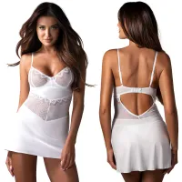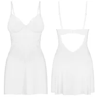 Cămașă de noapte albă și tanga dintr-un material delicat. Un set subtil și senzual cu un design clasic. Evidențiază perfect atu-urile tale, înfășurând plăcut șoldurile și subliniind talia, manifestând feminitate nu doar în timpul întâlnirilor romantice. Lasă-te surprinsă de combinația plăcută a materialelor de cea mai înaltă calitate, care te vor învălui în delicatețe și confort.