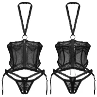 Plasa delicată îmbrățișează subtil corpul, iar decorațiunile din dantelă îi conferă o eleganță provocatoare. Bretelele pentru jartiere și îmbinările senzuale rotunde la coapse și decolteu fac ca acest set nu doar să atragă privirile, ci chiar să hipnotizeze.