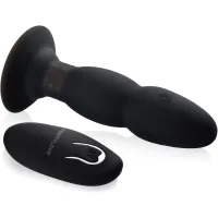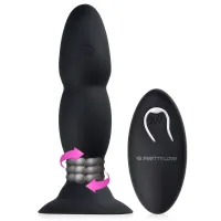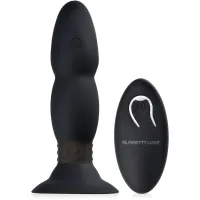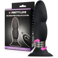 Unul singur de acest tip!! Dop anal vibrator cu bile de metal rotative controlate de o telecomandă fără fir sau direct de la gadget. Oferă un masaj pătrunzător pe întreaga lungime a anusului, îl stimulează cu vibrații intense și captivează cu o stimulare rotativă excepțională. Forma de bilă a dopului garantează plăcerea doar prin mișcarea în interiorul îngust. Telecomanda wireless oferă posibilitatea de a preda plăcerea dvs în mâinile partenerului dvs. Siliconul din care a fost fabricat garantează, de asemenea, 100% siguranță și confort pentru corpul dvs.