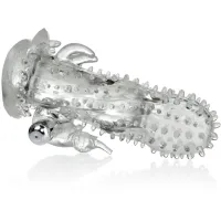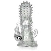 Manșonul din silicon a fost fabricat din silicon moale, din gel. Foarte elastic - se mulează pe orice penis. Pe manșon se află numeroase protuberanţe de diferite mărimi, care vor masa adânc vaginul femeii. Datorită lui, iubita ta poate atinge orgasmul mai repede. Adiţional, manșonul se mulează perfect pe penis, de aceea erecţia ta poate deveni mai repede mai puternică și considerabil mai lungă. În partea de jos a manșonului se află un elefant cu vibraţii puternice. Trompa sa extinsă va masa precis clitorisul iubitei tale. Datorită acestui manșon, sexul va căpăta o altă dimensiune. Baterii + gel mic lubrifiant în set GRATIS - săculeţ elegant pentru păstrarea manșonului.Lungimea manșonului neîntins 14 cm, poate fi întins până la 25 cm.
