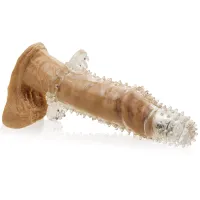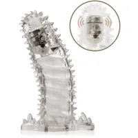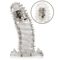 Manșon din gel pentru penis. Va prelungi penisul tău cu 4cm. Capătul curbat al manșonului va găsi fără probleme punctul G și îl va masa bine. Pe toată lungimea gadgetului se află numeroase protuberanţe, care vor stimula vaginul partenerei și datorită cărora partenera ta va atinge orgasmul mai repede. Manșonul conţine vibraţii, care pornesc la atingere. Ajunge să introduci penisul tău în manșon, iar sistemul de vibraţii va porni singur. La baza produsului sunt plasate stimulatoare de anus și de clitoris. Lungimea totală a manșonului este de 14 cm, diametrul interior 3,5 cm. Produsul a fost fabricat din material de gel elastic, deci se va mula fără probleme pe orice penis.Baterii + gel lubrifiant în set