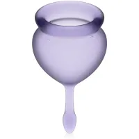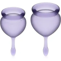 Satisfyer Feel Good este un set de două cupe menstruale, reprezentând o alternativă igienică, prietenoasă cu corpul și ecologică la tampoane și absorbante. Setul include două cupe menstruale de diferite capacități - 15 și 20 ml. Astfel, poți adapta confortabil dimensiunea la abundența și ziua ciclului menstrual. Satisfyer Feel Good este echipat cu un mâner comod în formă de coadă, care va facilita utilizarea chiar și pentru femeile fără experiență. Mânerul în formă de coadă va ajuta la localizarea și extragerea cupei, fără a cauza probleme de utilizare. Cupa este fabricată din silicon medical hipoalergenic, delicat pentru corp și ușor de menținut curat. Se folosește la fel ca un tampon, fiind plasată în vagin pentru a colecta sângele menstrual. Spre deosebire de tampoane, cupa menstruală poate fi spălată, dezinfectată și utilizată de mai multe ori, reducând astfel cantitatea de deșeuri și economisind bani. Mai mult, cupa poate fi purtată o singură dată până la 12 ore, ceea ce în cazul tampoanelor ar putea duce la șoc septică. Cupa menstruală nu absoarbe mucusul natural, nu usucă și nu irită mucoasele, oferind o senzație de confort pe tot parcursul menstruației. Înainte de utilizare, cupa trebuie sterilizată în apă clocotită timp de aproximativ 3-4 minute. În timpul menstruației, la fiecare schimbare a cupei, trebuie să fie spălată cu apă caldă și cu un lichid de curățare pentru cupe sau cu produsul tău preferat de igienă intimă. După terminarea menstruației, cupa trebuie să fie spălată, sterilizată, uscată și depozitată în săculețul inclus în set. Pentru o aplicare fără dificultăți, recomandăm folosirea unui lubrifiant pe bază de apă.