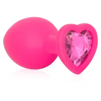 Îmbogățește-ți viața erotică cu acest gadget fermecător. Dopul anal roz din silicon cu inima de cristal atrage atenția prin aspectul său discret și dulce și garantează senzații unice în timpul stimulării. Fabricat din silicon neted de înaltă calitate, așteaptă doar să îți umple fundul doritor de mângâieri. Folosește-ți lubrifiantul preferat și dedă-te plăcerii anale. Datorită dimensiunilor sale reduse, este ideal dacă abia începi călătoria prin bogata lume a senzațiilor anale.