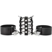 Cușcă de penis perversă cu cătușe BDSM. Gadget sexual pentru constrângere, sclavie și dominare. Oțelul, inelele grele combinate cu cătușele blocate vă vor permite să preluați imediat controlul asupra partenerului dvs., luându-i posibilitatea de a obiecta. Sclavul dvs. vă va arăta respect și supunere deplină, iar dvs. veți putea să-l pedepsiți sau să-i arătați milă. Curelele de încheietură reglabile pot fi detașate de cușca penisului din oțel și pot fi utilizate în moduri diferite, în set sau separat.