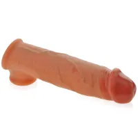 Extensie anatomică pentru penis și testicule realizată din material TPE moale și flexibil de ultimă generație. Materialul imită perfect senzația pielii reale și, atunci când este utilizat cu un lubrifiant pe bază de apă, permite o senzație complet realistă și naturală în timpul penetrării. Extensia are forma unui penis masculin, acoperit cu numeroase vene și face ca penisul să arate mai bine, mai gros, mai mare și mai tare. Acest gadget mărește membrul cu până la 4 cm, cu un rezervor de spermă plasat în gland. De data aceasta vei fi la înălțimea așteptărilor ei și îi vei oferi un orgasm la care nici măcar nu a visat vreodată.