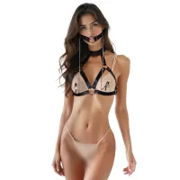 Curelele puternice și reglabile din piele ecologică înfășoară bustul, subliniindu-i forma și adăugând întregului un caracter îndrăzneț. Nituri și catarame metalice nu doar că întăresc construcția, dar funcționează și ca elemente decorative, atrăgând privirea și subliniind stilul BDSM într-o versiune feminină.
