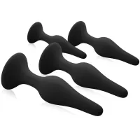 Un set bogat pentru jocuri anale - patru dopuri de diferite dimensiuni, cu o ventuză solidă, realizată din silicon catifelat de înaltă calitate. Un set excelent atât pentru amatori, cât și pentru profesioniștii în desfătarea anusului. Mărimea variată a dopurilor va satisface atât începătorii, cât și pe cei experimentați, oferindu-le dimensiunea plăcerii pe care o doresc la o anumită etapă. Materialul neted și forma ergonomică a dopului fac ca aplicarea lor să fie extrem de confortabilă, iar întreaga distracție o fac interesantă de la primul contact. De asemenea, ventuza oferă posibilitatea unor jocuri independente fără a utiliza mâinile. Toate acestea pentru a vă bucura de plinătatea plăcerilor anale.