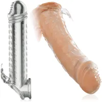 Suprapunere pe penis realizată dintr-o masă foarte plastică și plăcută la atingere. Îți face penisul mai gros și proeminențele delicate de pe suprafața sa s-au elementul suplimentar care irită clitorisul oferă partenerului dvs. orgasme multiple. Suprapunerea este echipată cu un inel pe testicule. Acesta stoarce penisul de-a lungul întregii sale lungimi, controlând fluxul de sânge, datorită căruia erecția dumneavoastră este mai puternică și ejacularea este întârziată. Utilizarea suprapunerilor pe penis în timpul jocurilor zi cu zi iubita ta va fi în măsură să vă simtă mai greu și mai profund, iar orgasmul va fi incomparabil mai intens decât sexul fără suprapunere.