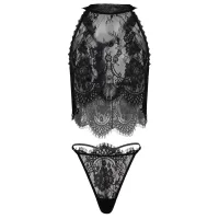 Cămașa a fost confecționată din dantelă neagră delicată, care, ca un văl fin, va învălui corpul tău. Pe spate se află un decupaj care aprinde imaginația și un șiret, datorită căruia, cu o singură mișcare, îți vei dezvălui sânii dornici de plăcere.