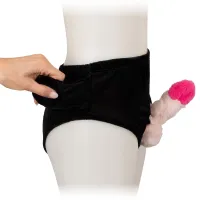 Chiloți negri, moi din velur îmbrățișează corpul ca o promisiune ispititoare, iar în fața lor se află eroul întregului spectacol — penisul pufos și roz, care poate... sta în picioare atunci când apeși ușor pe pompa ascunsă.