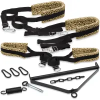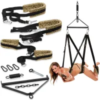 Un leagăn de dragoste cu elemente de pluș într-un set cu cadru pentru agățat de tavan. Asamblarea extrem de simplă și durabilitatea de până la 300 kg permit experimente extraordinare și testarea pozițiilor Kamasutra indisponibile anterior. Uită-te adânc în fantezia ta și explodează-ți dorințele cele mai interioare. Balansoarul este fabricat din material solid, o combinație de curele cu chingi și suporturi moi, asigurând cel mai înalt confort chiar și în timpul sesiunilor sexuale foarte lungi. Mânerele metalice adecvate și carabinele asigură cea mai înaltă siguranță, astfel încât frica să nu vă limiteze plăcerea. Modelul pătat adaugă un caracter prădător care reflectă temperamentul dvs. Un cadru solid din oțel pentru agățarea de tavan conține toate elementele necesare pentru auto-asamblare.