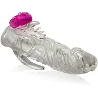 Manșon pentru ereţie și stimulare fabricat din material de gel flexibil cu protuberaţe.Cilii moi, care masează clitorisul, sunt puși în mișcare de un mini-vibrator, care va oferi senzaţii nebănuite. Extensia va avea grijă de cealaltă găurică a Partenerei! Manșonul se mulează pe orice penis și îl prelungește cu 2cm datorită capătului plin. Mărește eficient erecţia, durata actului sexual și ajută la prevenirea ejaculării precoce.