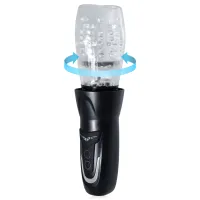 Tunelul transparent cu proeminențe te învăluie și te atrage într-un vârtej al plăcerii care nu cunoaște limite – literalmente, deoarece dispozitivul nu doar că vibrează, ci se și rotește și se mișcă cu un mișcare de împingere, stimulându-te într-un mod dificil de comparat cu orice altceva.