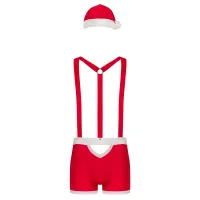 Oferă-i bărbatului tău acest set sexy, datorită căruia sărbătorile vor fi cu siguranță de neuitat. Boxeri roșii cu bretele, la care se adaugă o clasică șapcă de Moș Crăciun, aduc o notă de relaxare și umor. Este o alegere excelentă pentru o distracție de sărbători cu un ochi închis, care va încălzi serile de iarnă și va adăuga un pic de umor în momentele voastre intime!
