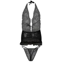 Trezește zeița sexului din tine cu setul unic Hailey. Cămașa de noapte din dantelă cu spatele gol stârnește imaginația și încurajează la un joc amoros. Decolteul adânc cu elemente decorative și legare la spate și gât oferă un efect foarte elegant. Datorită acestui fapt, vei simți o încredere extraordinară în tine, ceea ce va simți și bărbatul tău, tratându-te ca pe un adevărat tezaur. Întregul set este finisat cu un volan delicat, iar fesele tale vor fi sublimate apetisant de dantela strâmtă și transparentă, ceea ce va încălzi și mai mult această seară specială. Uimește-ți alesul cu frumusețea feminină strălucitoare și oferiți-vă o călătorie erotică până la stele.