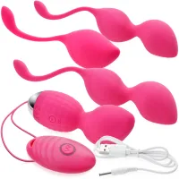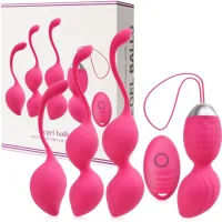 Un set de trei bile Geisha de diferite dimensiuni și greutate și o bilă vibratoare din silicon medical ușor și sigur pentru organism, ușor de păstrat igiena. Bilele au o formă ergonomică, care le conferă un aspect frumos și ușurează utilizarea. Trei bile manuale permit formarea progresivă a mușchilor Kegel. Treningul ar trebui să înceapă de la cele mai ușoare bile și în mod regulat la aproximativ o dată la două săptămâni / lună pentru a înlocui bile mai grele. În interiorul bilele sunt sfere mai mici, care în timpul mișcării sunt montate să vibreze, care, la rândul său, oferă un stimulent suplimentar pentru dezvoltarea mușchilor. Pentru ca antrenamentul să fie eficient, bilele trebuie purtate în timpul exercițiului, de ex. în timpul lucrului casnic. Mușchii puternici Kegel sunt esențiali pentru menținerea sănătății părților intime ale corpului femeilor, dar cresc și senzația sexuală. Orgasmul devine vizibil mai profund și mai intens atât la femei cât și bărbați. Minge cu vibrații, controlată de o telecomandă fără fir are 10 funcții de vibrație și pulsare. Acesta poate fi folosit pentru training, dar funcționează bine ca un maseur sexual feminin pentru zone erogene - vagin, clitoris, anus sau sâni. Aceasta îți va permite să te joci solo sau în cuplu. Poți oferi telecomanda partenerului și lăsă-l să preia plăcerea ta.
