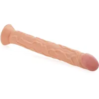 Mega mare dildou pentru nișele flămânde și pentru mângâieri iuți. Un penis vânos cu o ghindă umflată care te va excita cu aspectul său și va trezi poftele cele mai sălbatice. Datorită ventuzei solide, o poți așeza pe orice suprafață netedă și fără a-ți folosi mâinile te vei bucura de o penetrare pasională cu un final intens și tare. Acesta este un gadget sexual pentru femeile cărora le place să se simtă puternic umplute și răsfățate minunat, femeile care doresc senzații intense și penetrare profundă.