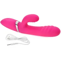 Vibrator dublu pentru penetrare vaginală și anală simultană. Masturbator pentru femei cu două motoare vibrante compatibile. Vibratorul are 28 de funcții diferite de vibrații și pulsații și 5 niveluri de intensitate pentru fiecare dintre ele. Aveți la dispoziție până la 140 de combinații de mângâieri, perfect adaptate la nevoile dumneavoastră. Siliconul din care este fabricat dispozitivul este catifelat și foarte moale. Acesta răsfață corpul feminin cu încântare și plăcere, oferind cel mai mare confort. Trunchiul vibratorului este îngroșat, cu striații pe interior. Aceleași striații se regăsesc și pe protuberanța clitoridiană. Cu o stimulare intensă, eficientă și simultană a punctului G și a clitorisului, veți ajunge la orgasm în doar câteva momente de mângâiere. Acest vibrator va deveni gadgetul tău preferat pentru masturbarea solo, dar și pentru jocul în duet. Designul său complet rezistent la apă permite utilizarea în siguranță în baie sau la duș.