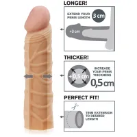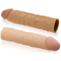 SPECIFICAȚII: - Material: Ciber piele - Extinderea penisului: 3 cm - Lungimea manșonului fără extindere (posibilitatea de reducere a lungimii): 17,5 cm - Lungimea spațiului gol: 14,5 cm - Diametrul exterior al manșonului: 3,5 cm - Diametrul interior fără extindere: 3 cm - Îngroșarea penisului: 0,5 cm - Extindere: până la 200% - Rezistent la apă: Da