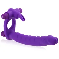 Vrei ca partenera ta să atingă un orgasm dublu? Cu acest gadget nu este nicio problemă. Fabricat în totalitate din silicon medical, produsul a fost creat pentru ca tu să poţi mângâia ambele găurele ale partenerei în același timp. Inelul elastic aplicat pe penis va mări eficient erecţia, durata actului sexual și va ajuta la prevenirea ejaculării precoce. Dildo proeminent îţi va permite penetrarea gaurei din spate a iubitei, atunci când tu te scufunzi cu penisul tău în păsărica ei umedă. Micul iepuraș vibrator cu urechi cu lungime flexibilă va stimula iubita între picioare. Gadgetul este dotat cu 2 motoare de vibrare puternice ( în penis și în iepuraș). Vibratorul lung este dotat în interior cu multe falduri și protuberanţe, care vor intensifica plăcerea resimţită.