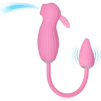 Pregătită pentru experiențe de neuitat? Acest gadget roz drăguț doar pare nevinovat de dulce, pentru că poate face cu adevărat foarte multe. Pe de o parte ai un clasic iepuraș vibrator cu un stimulator de aspirație pulsant – ideal pentru o stimulare atentă a clitorisului. Pe de altă parte – un ou vibrator, pe care îl poți introduce în interior sau... oriunde dorești.