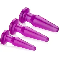 Descoperă noi orizonturi de plăcere. Dopurile anale din gel, cu formă clasică fluidă, vor aprinde orice găurică strâmtă. Setul conţine trei dopuri de mărimi diferite. Alege dopul care îţi va da cea mai mare plăcere sau utilizează-le pe toate câte puţin. Au fost fabricate din material de gel flexibil, foarte neted, ceea ce va permite o penetrare mai adâncă. Datorită formei mai înguste de la capăt, dopurile nu vor ieși chiar și în timpul celor mai fierbinţi jocuri erotice. Mânerul de la capăt permite noi posibilităţi de utilizare și este foarte comod. Datorită formelor sale fluide vor intra în cea mai îngustă găurică și o vor stimula puternic. Dopurile anale sunt ideale pentru jocurile în pat, dar și în cadă sau sub duș.