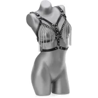 Sutien BDSM extrem de provocator și obraznic, cu lanțuri. Lenjerie erotică perfectă pentru femeile încrezătoare, cu o natură perversă și o dispoziție dominantă. Sutienul expune perfect sânii, care aici sunt descoperiți și doar subtil umbriți de lanțurile care cad liber. Sutienul va stârni dorința, încurajându-vă să vă jucați din greu. Datorită ajustării confortabile a circumferinței și a curelelor, puteți ajusta dimensiunea la silueta dvs.