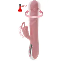 Vibrator rotativ din silicon, fin și mătăsos, cu funcție de încălzire până la 42 de grade Celsius și un iepuraș clitoridian inovator. Un vibrator pentru cele mai exigente femei care își doresc plăcere multidimensională și mângâieri la cel mai înalt nivel. Vibratorul are două motoare puternice de vibrație - în trunchi și în iepuraș. Motoarele de vibrații funcționează împreună și au 20 de funcții de vibrații și pulsații. Vibrația din iepuraș declanșează vibrații încântătoare ale limbilor de masaj și ale palpatoarelor care stimulează cu îndemânare clitorisul, ducând la un orgasm intens în doar câteva momente. Motorul rotativ are 3 niveluri de intensitate a mișcării, iar proeminențele aplicate în partea superioară a vibratorului mângâie minunat interiorul vaginului, în special punctul G, în timpul fiecărei ture. Motorul rotativ, vibratorul și funcția de încălzire pot fi utilizate împreună sau separat. Vibratorul are un design rezistent la apă. Îl puteți folosi fără teamă în timpul unei băi sau al unui duș relaxant. Prin urmare, este igienic și ușor de întreținut.