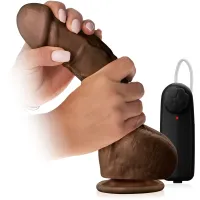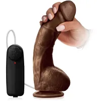 Prin încălecare? Pe la spate? Cu acest penis poţi să faci tot ceea ce dorești. Are o lungime de 22cm și aproape 5cm diametru! La baza penisului se află o ventuză, datorită căreia vei putea să experimentezi mai mult! Vibratorul are culoarea maro, foarte realistă. Prezintă de asemenea un cap bine profilat, pe toată lungimea lui se află vene, iar la bază are două testicule mari. Vibratorul are de asemenea un cap rotativ, datorită căruia ca găsi cel mai sensibil punct al tău și îţi va da un orgasm incredibil. În plus, reglarea mișcării de rotire a capului se face cu ajutorul unei telecomenzi incluse în set. Nivelul intensităţii rotaţiilor poate fi reglat de la ușor la foarte tare. De acum contează numai imaginaţia ta și un mega mega orgasm!