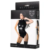 Body-ul senzual Adrian care îmbină eleganța cu un stil îndrăzneț. Realizat din material negru, strălucitor Wetlook, subliniază perfect silueta, creând un aspect impresionant și senzual. Acest material este foarte elastic, adaptându-se la silueta corpului, garantând confort și comoditate. Benzile decorative cu ținte nu doar adaugă un plus de caracter, dar și modeleză silueta, evidențiind frumos bustul. Datorită benzilor de jartieră poți crea un set incredibil de fierbinte, care va aprinde focul dragostei în timpul unei seri senzuale în doi. Este alegerea ideală pentru femeile care doresc să se simtă speciale și sigure pe ele în orice situație: de la ieșiri de seară, ședințe foto, până la stilizări curajoase pentru o seară intensă în doi.