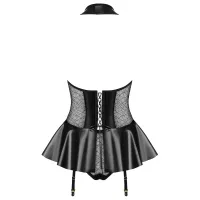 Vrei să mergi cu un pas mai departe? Cauți ceva extrem de senzual? Încearcă un corset sexy cu volan feminin, care te va surprinde atât pe tine, cât și pe el! O combinație neobișnuită de material tip „wet look” și plasă cu un model subtil, o deschizătură la bust și un fermoar seducător - astfel de atracții doar la Obsessive! Și nu va dura mult până când ... vor ajunge și în dormitorul vostru! Partea de sus a corsetului înconjoară senzual gâtul, transformându-se într-o deschizătură îndrăzneață la bust, terminată cu un fermoar. La spatele corsetului se află un șiret - asigură confort și ajustare perfectă, fiind în același timp o podoabă seducătoare și foarte feminină. Întregul este completat de partea de jos evazată a corsetului, care adaugă farmec feminin. Datorită închiderii la gât, fermoarului din față și ajustării din spate, corsetul poate fi pus și scos ușor și rapid. Corsetul negru 859 este o propunere de stilizare neobișnuită, chiar surprinzătoare pentru o întâlnire intimă în dormitor. Deși este foarte seducător, nu dezvăluie prea mult, lăsând loc imaginației. Bretelele detașabile pentru ciorapi constituie un atu suplimentar al corsetului. Datorită lor, poți alege diferite modele și culori de ciorapi, arătând diferit de fiecare dată.