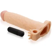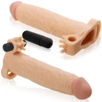 Lungi-ți penisul cu 5 cm! Acum este posibil într-o fracțiune de secundă datorită extensiei multifuncționale. Manșonul unic pentru penis are un motor suplimentar vibrator, pe care îl poți introduce în vârful cu proeminențe de masaj. Acest lucru va garanta partenerei tale senzații cerești. Când vei mângâia vaginul ei cu un penis mai mare și mai gros, manșonul va avea grijă de clitorisul ei însetat. Extensia, realizată din piele cibernetică, este extrem de netedă și plăcută la atingere. În plus, oferă senzații realiste, care sunt amplificate și de umflături naturale și vene. Manșonul include, de asemenea, un inel pe care îl poți plasa pe testicule și te poți bucura de senzații de nedezribuit. Materialul de cea mai înaltă calitate se potrivește perfect pe corpul tău, oferindu-ți senzația unei a doua piei. Descoperă o nouă calitate a sexului, dă-i partenerei tale ceea ce a visat dintotdeauna și alege un manșon multifuncțional și unic.