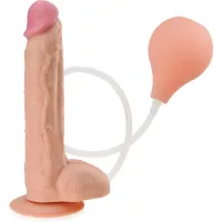 Dildo realist pentru jocuri sexuale extreme. Un penis generos, mare, cu testicule pe o ventuză puternică, datorită căreia îl poţi aşeza pe orice suprafaţă netedă și vă poţi delecta cu joc plăcut fără a vă folosi mâinile. Dildo îți va oferi, de asemenea, o experiență naturală și o ejaculare reală. După umplerea pompei cu apă sau spermă artificială, atunci când îl strângi la vârf, vei fi umplută cu un val încântător de căldură umedă. Venele realiste şi ghinda roz umflată îţi vor stârni dorinţa la maxim. Materialul din care este fabricat dildoul nu absoarbe mirosurile, este delicat și plăcut la atingere ca pielea umană.
