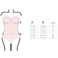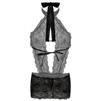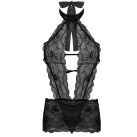 A fost realizat din dantelă frumoasă, transparentă, care îți modelează corpul, acoperindu-l cu un văl de mister. Partea superioară este legată la gât și pe spatele dezgolit. Setul va evidenția de asemenea frumos sânii și talia ta, iar partea inferioară va sublinia ispititor fesele. Legarea la gât formează o fundă frumoasă, făcându-te un cadou ispititor, care dorește să fie despachetat cât mai repede pentru a descoperi ce ascunde în interior.