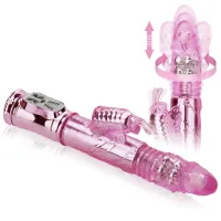 Vibratorul a fost fabricat din gel moale și plăcut la atingere. Acesta oferă o plăcere incredibil de intensă datorită combinației unice de mișcare in-out, bile de masaj și iepuraș, care vibrează puternic. Lasă-l să te penetreze și descoperă plăcerea pe care ţi-o poate oferi. Perlele de masaj vor masa interiorul vaginului, iar mișcarea de dute-vino te va duce pe culmile plăcerii. În plus, poți adăuga la efectul masajorului, iepurașul vibrator cu sistem de vibrare independent. Acest produs inedit are 5 viteze de dute-vino, 5 viteze de rotire a biluțelor de masaj și 5 viteze de vibrații în iepuraș. Biluțele de masaj au un avantaj suplimentar, și anume, puteți schimba direcția de rotire a acestora.